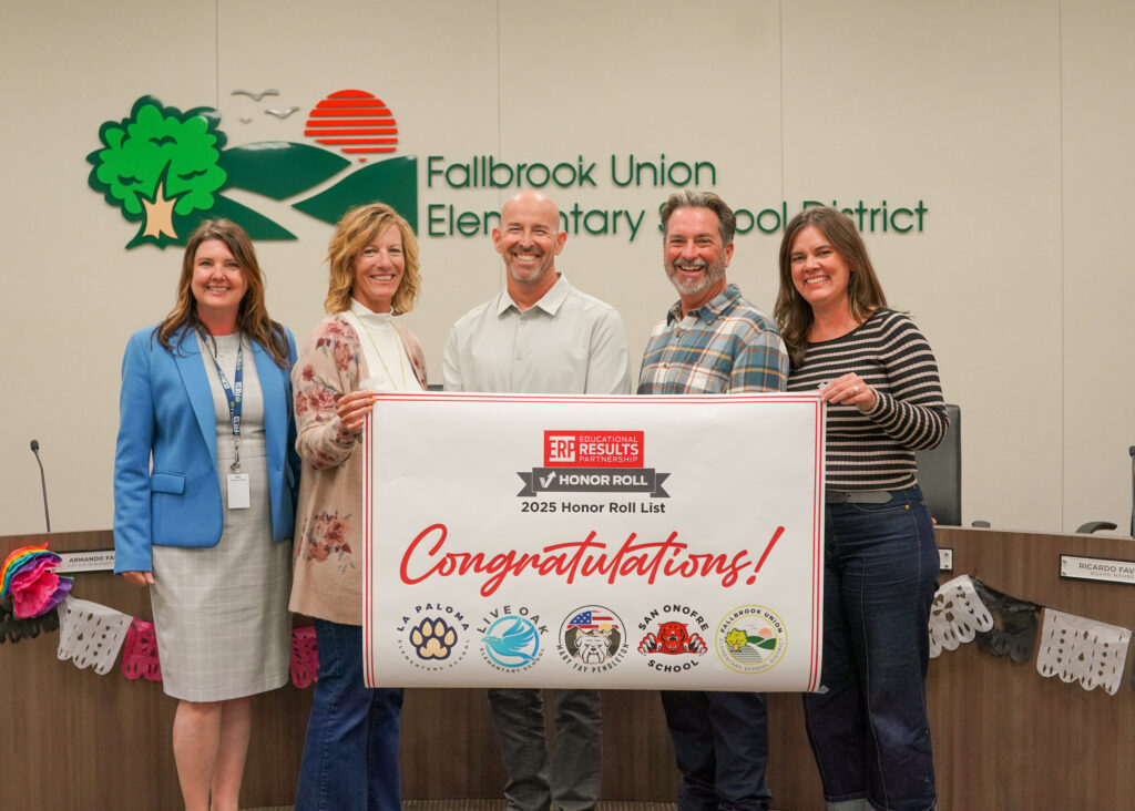 The Fallbrook Union Elementary School District (FUESD) has been named a 2024–2025 STAR District by the Educational Results Partnership (ERP), joining just eight other districts in San Diego County to receive this statewide honor. Additionally, La Paloma Elementary, Live Oak Elementary, Mary Fay Pendleton Elementary, and San Onofre Elementary were each recognized as STAR Schools on this year’s California Honor Roll.